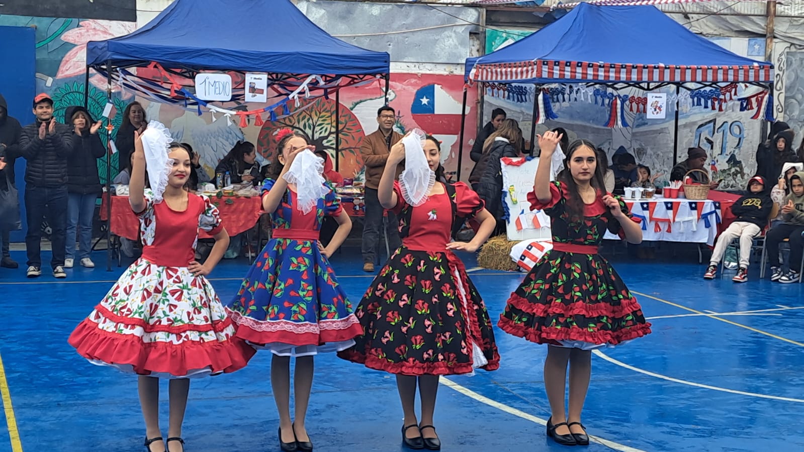 Nuestra primera versión fue con grabación de las parejas participantes, ya que nos encontrábamos en plena pandemia…. hoy ya hemos crecido mucho más. Se ha hecho una bella presentación del saludo a la bandera por el estudiante Benjamín Marín Ortega de 7° Año y de una preciosa fantasía de cueca por nuestras estudiantes de I Medio: Libertad Aymans Escobar, Isabella Miranda Miranda, Antonia Valenzuela Manríquez y Nicole Villalba Araujo.