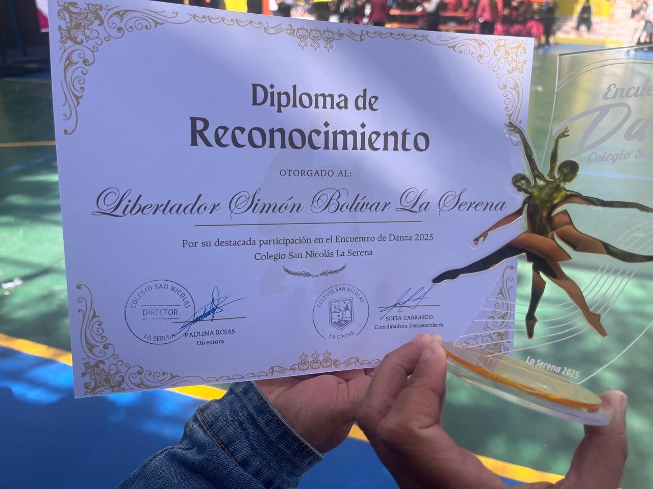 Felicitamos a las y los estudiantes Emma Arancibia Cepeda, Carolina Cuellar Ávalos, Laura Monardes Heredia, Matilda Serrano Toro y Tomás Fontealba Canihuante, quienes, junto a su profesora Yesennia Bravo Guzmán, del Taller de Danza del colegio, participaron con entusiasmo y responsabilidad, dejando en alto el nombre de nuestro establecimiento.